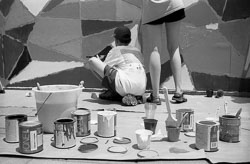 Jimmie Matthews was an art teacher in Rock Hill, South Carolina. These images were taken in 2015 while he and his art students painted a mural on plywood covering the work site just after the old Woolworth's building was dismanted on Main Street. This mural stood in the Old Town area for months before the apartment building was started that stands there today.